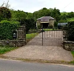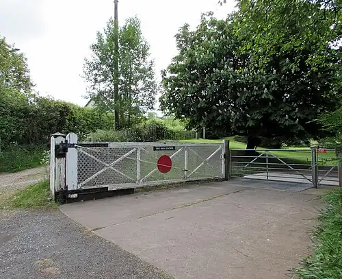 ![]() Level crossing gate from Scowles Road, at the North of the station | |||||