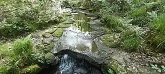 The path crosses a further stream called Mere Burn[6] with another small waterfall, Mere Burn Waterfall, before turning south then running south west adjacent to the River Derwent towards Shotley Bridge. For this reason, the path is nicknamed locally as Waterfall Way. Both streams join the River Derwent.
