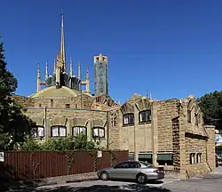 The original set of campus buildings were built during 1916 to 1918 and were designed by American architects Walter Burley Griffin and Marion Mahony Griffin. The Burley Griffins also designed furniture for the college, including distinctive chairs, tables and bookshelves for the dining room and the original bedrooms of the college. Much of this furniture remains in day to day use at the college, but some of it has found its way into various art galleries and private collections.[16] This was recognised by its inclusion on the Australian National Heritage List on 21 September 2005, citing "one of the best examples of Griffin’s architecture in Australia" and "Newman College is significant as an outstanding expression of Griffin’s architectural style".[17] The stonework has had substantial renovation to repair over 80 years of damage through exposure and natural degradation of the original stone and received the Australian Institute of Architects (Victorian Chapter) Heritage Architecture Award 2010.[15]