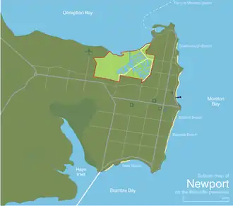 - ^ a b c "Newport – suburb in Moreton Bay Region (entry 50111)". Queensland Place Names. Queensland Government. Retrieved 28 December 2020.