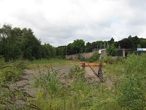 All traces of the passenger station had disappeared by 1960, with the site marked only by a zero milepost from which the distances into the Western Valley were measured.[11] The line through Courtybella was singled in 1971[12] the section west to Park Junction on the Western Valleys line closing in 1981[13] The line east to Dock Street remained open until 26 January 1991[14] following the cessation of coal traffic to the distribution centre at Dock Street.[12] The track was then lifted back to Courtybella Crossing, although in recent years a short section was relaid as a run-round loop for trains from Newport Docks which need to proceed west, in particular for coal trains to Aberthaw.[12]