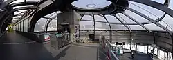 The new bridge is clad in ethylene tetrafluoroethylene (ETFE),[21] the material which protects the Eden Project in Cornwall. The station enhancements were engineered by Atkins Engineers, based in Exeter and Swindon, with design support from Grimshaw Architects and Vector Foiltec working as sub-consultants.[22] The new north and south concourses opened on 13 September 2010.[23]