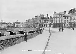 During the Irish Rebellion of 1641, Newry was captured by Irish Catholic rebels led by the Magennises and McCartans.[18] In May 1642, a Scottish Covenanter army landed in Ulster and seized Newry from the rebels. James Turner, one of the Scottish officers, recounted that Catholic rebels and civilians were taken to the bridge over the Newry River and "butchered to death ... some by shooting, some by hanging ... without any legal process".[19] The Scottish general, Robert Monro, said that sixty townsmen and two priests were summarily executed.[20] Turner also said that Scottish soldiers drowned and shot about a dozen Irishwomen before he stopped them killing more.[21]