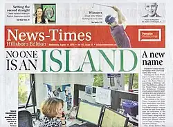 The News-Times is a weekly newspaper covering the cities of Forest Grove and Hillsboro in the U.S. state of Oregon. Established in 1886 and with coverage focused on Forest Grove for most of its history, the paper expanded coverage to Hillsboro, when, in August 2019, its owner launched a separate Hillsboro edition of the News-Times to replace the Hillsboro Tribune.[2] The News-Times is published on Wednesdays.[3] It is owned by Pamplin Media Group, which publishes other community newspapers in the Portland metropolitan area.