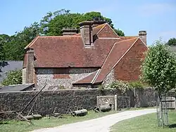 Saddlescombe Farm is a busy little place sitting at the base of the Downs which has been owned by the National Trust along with the surrounding countryside since 1995. It has lots of history having been listed as a working farm since the Domesday Book, belonging to the Knights Templar for around 100 years[8] and being one of the two manors of Newtimber Parish. The ancient well in middle of the village green is probably the only visible relic of the manor and the donkey wheel above it that wound up the hamlet's water is still intact.[9] There are rusting iron oxen shoes tacked to the old doorway farmhouse.