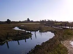 Newtown is located 5 miles (8 km) west of the town of Newport on the large natural harbour on the island's north-western coast.[1] It is now mostly a national nature reserve owned and managed by the National Trust.
