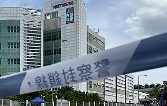 ![]() A police cordon outside the Next Digital building on 10 August 2020 | |