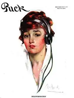 McMein sold her first drawing to the Boston Star in 1914.[5] However, an earlier illustration by McMein was used in 1912 by Associated Sunday Magazines, dated November 10, 1912. It was used as the cover art in both the St Louis Republic and the Buffalo Courier on that date. She created Harry Horowitz's portrait in 1915 before he was executed for Herman Rosenthal's murder.[5] That year, she sold an illustration for the cover of The Saturday Evening Post[5] and her Misinformation illustration appeared on the May 8, 1915, cover of Puck magazine.[8] She became known for her portrayal of "All American Girls."[4]