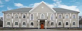 Architecturally Nizhyn was shaped in the 18th century. Foremost among its buildings must be mentioned its seven Baroque churches: Annunciation Cathedral (1702–16, modernised 1814), Presentation Cathedral (1788), St. Michael's Church of the Greek community (1719–29), St John's Church (1752, illustrated, to the right), Saviour's Transfiguration Church (1757), Intercession Church (1765), and the so-called Cossack Cathedral of St. Nicholas (1658, restored 1980s), a rare survival from the days of Nizhyn's Cossack glory, noted for its octagonal vaults and drums crowned by archetypal pear-shaped domes.[12] Other notable buildings include the Trinity Church (1733, rebuilt a century later), the Greek magistrate (1785), and the Neoclassical complex of the Nizhyn Lyceum (designed by Luigi Rusca, built in 1805–17, expanded in 1876–79).