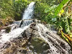 Ng Tung Chai Waterfalls form a group of four waterfalls, located south of Ng Tung Chai Village and within Tai Mo Shan Country Park. They are, in ascending order, Bottom Fall (aka. Well Falls), Middle Fall (aka. Horse-tail Falls), Main Fall (aka. Long Fall)[1] and Scatter Fall.[8] Main Fall features a drop of 35 metres and is considered as the highest waterfall in Hong Kong.[9][10]