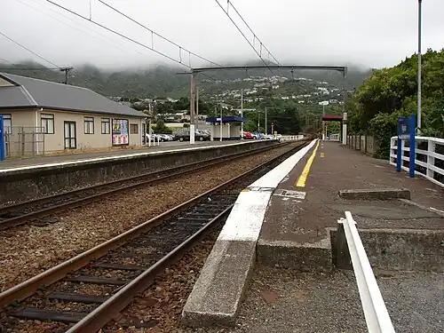 Ngaio railway station is one of eight railway stations on the Johnsonville Branch, a commuter branch railway north of Wellington in New Zealand's North Island, and serves the suburb of Ngaio. The station was erected and operated by the Wellington and Manawatu Railway Company (WMR) on their line from Wellington to Longburn. The area served by this station used to be called Crofton, until the suburb was renamed to Ngaio in 1908 to avoid confusion with Crofton, a suburb of Marton in the Manawatu.[2] From the acquisition of the WMR by the New Zealand Railways Department in 1908 until the opening of the Tawa Flat deviation in 1937, the station was on the North Island Main Trunk railway. On 2 July 1938, the truncated section of the line to Johnsonville became the Johnsonville Branch.