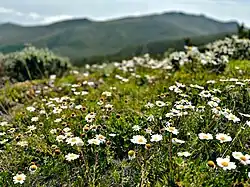 In general, the Ngorongoro District has a tropical savannah climate, especially in the Sale Division. The Ngorongoro District has an average rainfall of 800mm to 1,000mm and strong winds blowing from the East to the West. Large areas of the District of natural vegetation, the Acacia savannah, especially in the Central, Eastern and Western portions of the district. On the East and West side there is the Great Rift Valley and Mkubwa forests. The climate is more temperate and moorland in the Crater Highlands. The Southern part of the District is the Ngorongoro Conservation Area which occupies 59 percent of the district which is in one of the Ngorongoro Divisions.[8]