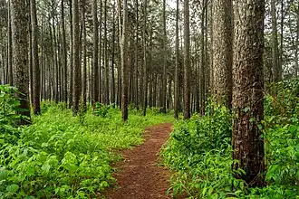 The Ngwo Pine Forest is a pine forest located in Ngwo, Enugu, Nigeria.[1] The forest is a large stretch of land with tall pine trees. It features a limestone cave and a waterfall, and is used as a recreational area, bolstering the socioeconomic development in the Enugu State.[2][3]
