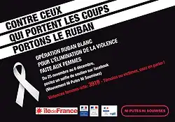Ni Putes Ni Soumises also supports the White Ribbon Campaign, which runs from 25 November to 6 December every year, and uses this as an opportunity to promote 3919, the national domestic violence helpline.
