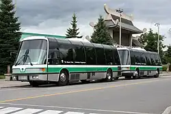 The service was operated by a fleet manufactured by Orion Bus Industries between 1985 and 1989 exclusively for the Parks Commission. It consisted of a combination of powered motor units equipped with engines and drivetrains, and unpowered trailer units which were coupled to and towed behind motor units to increase capacity during peak periods. Both motor units and trailers had a single set of double-leafed plug doors for entry and exit, and despite the buses having a low-floor design, they were not wheelchair-accessible. The motor units were powered by liquified petroleum gas, then considered an unusual fuel type.[2][3] The fleet contained: