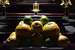 2. The offertory of food and monetary donations to sustain the local temple and its priests.