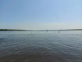 The two main inflows for Nickle Lake are the Souris River and Rinfret Brook, which enter the lake at the north end. The Souris River exits the south end at Albert Douglas Dam. On the eastern shore is Nickle Lake Regional Park, which is about 11 kilometres (6.8 mi) south-east of Weyburn.[2] There are no communities along the lake's shore and access is from Highway 39.[3][4][5]