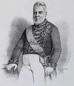 Nicolau Pereira de Campos Vergueiro, better known as Senator Vergueiro (Portuguese: Senador Vergueiro) (20 December 1778 – 17 September 1859), was a Portuguese-born Brazilian coffee farmer and politician. He was a pioneer in the implementation of a free workforce in Brazil by bringing the first European immigrants to work in the Ibicaba farm, which he owned.[1] The contract was prepared by Vergueiro himself, establishing ownership of the production and other measures, mostly of an exploitive nature. Faced with this, the immigrants working in Vergueiro's main property, the Ibicaba farm, revolted under the guidance of Thomas Davatz, a Swiss immigrant and religious leader, who instigated the immigrant workers to grow their ambition to become small or medium-sized landowners, as they imagined they would be when they had left Europe.