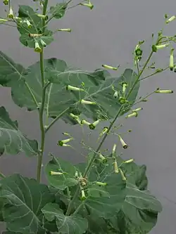 - ^ Sierro, N.; Battey, J. N. D.; Bovet, L.; Liedschulte, V.; Ouadi, S.; Thomas, J.; Broye, H.; Laparra, H.; Vuarnoz, A.; Lang, G.; Goepfert, S.; Peitsch, M. C.; Ivanov, N. V. (2018). "The impact of genome evolution on the allotetraploid Nicotiana rustica – an intriguing story of enhanced alkaloid production". BMC Genomics. 19 (1): 855. doi:10.1186/s12864-018-5241-5. PMC 6267829. PMID 30497378.