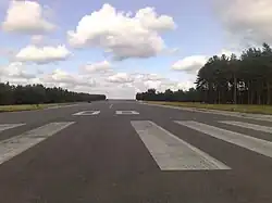 In 1998-2006 the runway surface, apron and taxiways were renovated by the government, but it was sufficient only to serve helicopters. After further reconstruction, the airport was officially reopened on 18 June 2016[1] for light aircraft (seating capacity up to four), gliders and helicopters. At that time, the airport had no refueling facilities and was formally just an airstrip with the assigned code A 129 and ICAO EYND (coordinates 55°19'40"N 21°2'45"E, 6 ft/2 m AMSL elevation, runway direction 08/26 and 815 m/2,674 ft asphalt).[2]