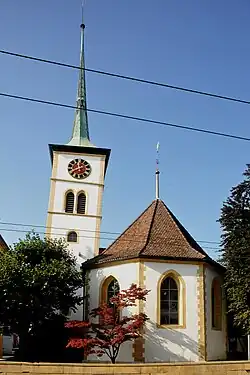 From the 2000 census, 3,637 or 53.5% belonged to the Swiss Reformed Church, while 1,503 or 22.1% were Roman Catholic. Of the rest of the population, there were 95 members of an Orthodox church (or about 1.40% of the population), there were 17 individuals (or about 0.25% of the population) who belonged to the Christian Catholic Church, and there were 168 individuals (or about 2.47% of the population) who belonged to another Christian church. There were 16 individuals (or about 0.24% of the population) who were Jewish, and 303 (or about 4.46% of the population) who were Islamic. There were 30 individuals who were Buddhist, 12 individuals who were Hindu and 6 individuals who belonged to another church. 745 (or about 10.96% of the population) belonged to no church, are agnostic or atheist, and 266 individuals (or about 3.91% of the population) did not answer the question.[12]