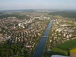 During the 18th and 19th century, the town was flooded several times when the river or lake rose. The Jura water correction projects of 1868–91, lowered the water level and helped protect the town from floods. The Thielle/Zihl river was constrained and the numerous side channels were filled in. The Nidau Buren canal replaced the Thielle/Zihl river as the main waterway in Nidau. It was connected to Biel/Bienne by railroad in 1857 and the two towns began to grow together. A number of new developments opened as Nidau's population grew. Today the outer quarters developments of Nidau flow seamlessly into those of Biel. Industry began to settle in Nidau in 1900, though today it is mostly home to small to medium businesses in the services sector.[3]