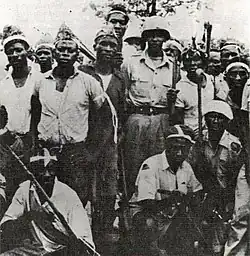 On 8 November 1960, an eleven-man section from the Irish Army's 33rd Battalion arrived at the bridge over the Luweyeye River. They were forced to leave their vehicles when they encountered a blockade on the road. While clearing it, they encountered about 100 Luba militiamen armed with bows, poison-tipped arrows, spears and clubs, as well as some guns. While the Irish troops had arrived to protect the Baluba, the militia undoubtedly took them for Katangese mercenaries. Lieutenant Kevin Gleeson, advancing unarmed with his platoon sergeant, Hugh Gaynor, attempted to greet them peacefully, but was hit with a barrage of poison-tipped arrows.[1]