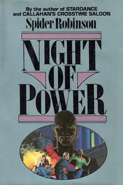 Night of Power is a novel by Spider Robinson. This is a speculative fiction tale about a race war that could have happened in New York. The book, written in 1984[1] although first published a year later, is set in the year 1996. The story revolves around an interracial family that has to deal with a black revolution in New York.