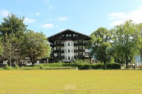 At about 04:30 on 30 June 1934, Hitler and his entourage flew to Munich. From the airport they drove to the Bavarian Interior Ministry, where they assembled the leaders of an SA rampage that had taken place in city streets the night before. Enraged, Hitler tore the epaulets off the shirt of SA-Obergruppenführer August Schneidhuber, the chief of the Munich police, for failing to keep order in the city the previous night. Hitler shouted at Schneidhuber and accused him of treachery.[38] Schneidhuber was executed later that day. As the stormtroopers were hustled off to prison, Hitler assembled a large group of SS and regular police and departed for the Hanselbauer Hotel in Bad Wiessee, where Ernst Röhm and his followers were staying.[39]