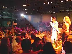 Nightclubs that feature laïkó music in Greece are popularly called bouzoukia (deriving from the plural of the main Greek instrument bouzouki). They typically have a raised stage ("pista") where singers, dancers and musicians perform, and a series of closely spaced long tables at right angles to the stage so that every guest can see the show. As there is little space between the tables, customers and waiters have trouble moving around.