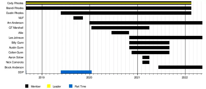 After months of inactivity, Cody Rhodes departed from AEW on February 15, 2022, effectively disbanding the stable.