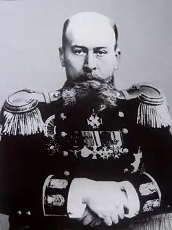 Nikolai Mikhailovich Bukhvostov (Russian: Никола́й Миха́йлович Бухво́стов) was a Russian Captain 1st Rank and war hero of the Russo-Japanese War. He commanded the Imperator Aleksandr III throughout the war before ultimately being killed during the sinking of the ship at the Battle of Tsushima.