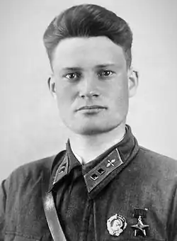Nikolai Mikhailovich Karabulin (Russian: Николай Михайлович Карабулин; 1918–1943) was a Soviet World War II Il-2 pilot and commanding officer of a ground-attack group whose pilots destroyed twenty enemy aircraft in a raid on a German airbase during the Battle of Moscow on 16 September 1941.
