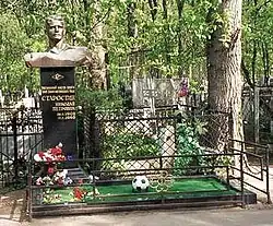 Nikolai Petrovich Starostin (Cyrillic: Никола́й Петро́вич Ста́ростин; 26 February 1902 – February 17, 1996) was a Soviet footballer and ice hockey player, and founder of Spartak Moscow.
