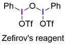 - ^ Yusubov, M.S. (2021). "Zefirov's reagent and related hypervalent iodine triflates". Mendeleev Commun. 31 (3): 282–287. doi:10.1016/j.mencom.2021.04.002. S2CID 236614544.