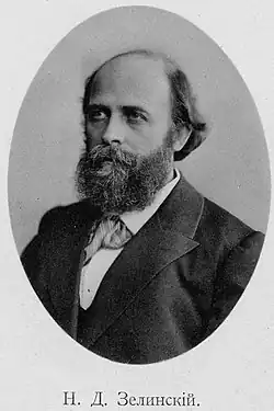 Nikolay Dmitriyevich Zelinsky (Russian: Николай Дмитриевич Зелинский; Ukrainian: Микола Дмитрович Зелінський, romanized: Mykola Dmytrovich Zelinskyy; 6 February [O.S. 25 January] 1861 – 31 July 1953) was a Ukrainian, Russian and Soviet chemist and educator. He was a professor at Moscow University from 1893 and an academician of the Academy of Sciences of the Soviet Union (1929).