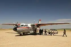 Nikolskoye Airport (Russian: Аэропорт Никольское) (ICAO: UHPX) is an airport on Bering Island, Russia located four kilometers southeast of Nikolskoye, Kamchatka Krai. It is the only airfield on the Commander Islands. The airport has no significant military use.