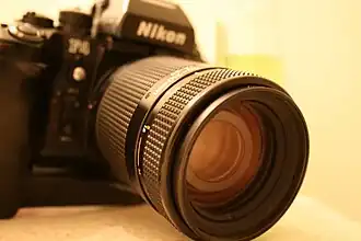 The Nikon F4 is a 35 mm autofocus (AF) single lens reflex (SLR) film camera, introduced in 1988 as the next generation in Nikon's line of F series professional cameras. With industrial design by Giorgetto Giugiaro, the F4 was the first professional Nikon to feature a practical autofocus system. The F4 is able to accept any of Nikon's manual focus (MF) or AF lenses from 1959 to the present day, including the two F3AF lenses (in Autofocus mode). The F4 succeeded the F3, a manual focus camera introduced in 1980 but outlasting the F4 as it stayed in production until 2001. Nikon introduced its next flagship model, the F5, in 1996. All F4 models were discontinued soon after, in May 1997.