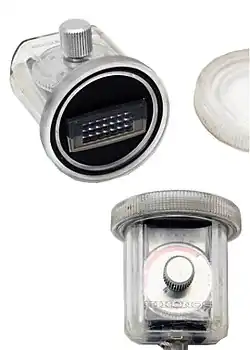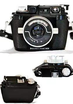 Nikonos is the brand name of a series of 35mm format cameras specifically designed for underwater photography launched by Nikon in 1963. The early Nikonos cameras were improvements of the Calypso camera, which was an original design by Jacques-Yves Cousteau and Belgian engineer Jean de Wouters.[1] It was produced in France by La Spirotechnique (currently Aqua Lung) until the design was acquired by Nikon to become the Nikonos.[2] The Nikonos system was immensely popular with both amateur and professional underwater photographers. Its compact design, ease of use, and excellent optical quality set the standard for several decades of underwater imaging. Nikon ceased development and manufacture of new Nikonos cameras in 2001, but the camera remains popular, and there is a large and active secondary market.