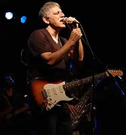 Nikos Portokaloglou (Greek: Νίκος Πορτοκάλογλου, pronounced [ˈnikos poɾtoˈkaloɣlu]; born 30 December 1957)[1] is a Greek singer-songwriter and lyricist. He started his career in 1980 as a founding member of Fatme. The band's first, self-titled album was released in 1982 and followed up by another five in the same decade, among them Taxidi and Vgenoume apo to tounel. In 1990, Portokaloglou embarked on a solo career, which he continues to pursue.[2] Notable solo albums of his include Ta karavia mou keo, Dipsa, and Brazilero, which are the soundtrack for the eponymous movie. Portokaloglou further scored the films Akropol and Valkanizater.[2] In 2002 he won three Arion awards in the categories "Best Song", "Best Entechno Album" and "Best Movie Soundtrack".[3] He has cooperated with other well-known singers from Greece such as Haris Alexiou, Melina Kana and Eleftheria Arvanitaki.