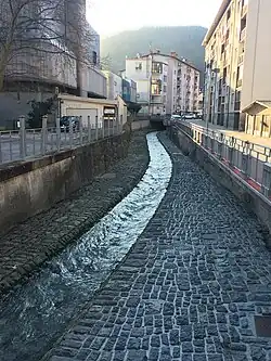 Nikova is a stream in western Slovenia and the second left tributary of the river Idrijca. The confluence of Nikova and Idrijca is in Idrija. It originates southeast of Rejec Hill (Slovene: Rejcov grič, lit. Breeder Hill) near the hamlet of Kočevše, which is part of the Čekovnik settlement. From its source, it flows for about 1.5 km (0.9 miles) through a gorge in SE direction and then changes direction to NE for approximately 1.5 km (0.9 miles). The lower part of the flow goes for another 1.5 km (0.9 miles) through the center of Idrija in a man-made concrete channel until it meets the Idrijca River.