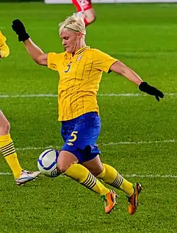 Her 35th-minute goal against the USA on the final day of group play in the 2011 World Cup would prove to be the match winner. That result put Sweden atop their group, and is the only time the Americans have suffered defeat in the group stage of a World Cup.[17]