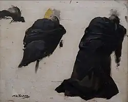In 1888 he received the gold medal at the Salon for his painting The Death of a Hero,[5][6][7] now in the Nationalmuseum of Stockholm.[8] The culmination of his ambition to renew traditional history painting with a vigorous contemporary realism, it took him several years to complete, and was inspired by his experiences during the Franco-Prussian War.[2] Afterwards he devoted himself more especially to historical subjects.[3] In 1904 he returned to Sweden, where he lived in Helsingborg.[2] He died in Helsingborg on 8 November 1934.[1][2]