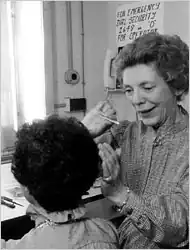 Nina Lawson (27 July 1926 – 9 September 2008) was a Scottish wigmaker who ran the Metropolitan Opera wig department from 1956 to 1987. She was responsible for cleaning up to 750 wigs a week in her early tenure, from every chorus member's wig to those of stars including Birgit Nilsson, Luciano Pavarotti, Joan Sutherland, Beverly Sills, and Plácido Domingo.