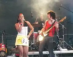 ![]() Ninja performing with The Go! Team | |