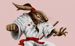 Ninja Rabbits is video game released in 1991 by MicroValue. The protagonist is an anthropomorphic rabbit with dark brown fur, a stick, and a ninja costume. He has to save a factory from destruction. The game was followed by International Ninja Rabbits.