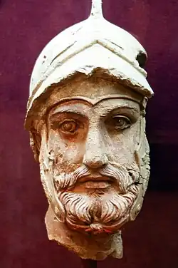 ![]() Sculptured head of a warrior, Old Nisa, 2nd century BCE. National Museum of Turkmenistan  | |