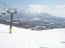 NISEKO TOKYU Grand HIRAFU (ニセコ東急 グラン・ヒラフ, Niseko Tokyu Guran Hirafu) is a ski resort located in the Hirafu area of Kutchan, Abuta District, Hokkaidō, Hokkaidō, Japan. It is a vast snow resort stretching from Niseko Annupuri’s summit (elevation 1,308.5 m) to its base, and it is famous for its fine-quality powder snow. Because of this, Hirafu is frequented by many non-Japanese skiers and snowboarders.