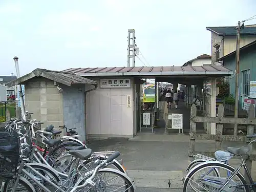 Nishihino Station (西日野駅, Nishihino-eki) is a terminal railway station on the two-station Kintetsu Hachiōji Line in Yokkaichi, Mie Prefecture, Japan, operated by the private railway operator Kintetsu. It is 1.3 rail kilometers from the terminus of the Hachiōji Line at Hinaga Station and is 3.1 rail kilometers Kintetsu-Yokkaichi Station.[1]