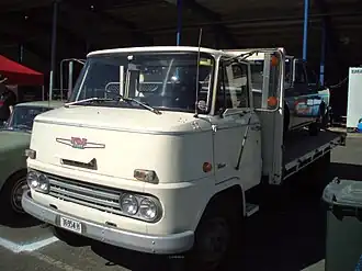 The Nissan C80 was a medium-duty cabover truck manufactured by the Japanese automaker Nissan. The 3.5 ton C80 was introduced in 1966 to fill the gap between the 2 ton Nissan Caball and the 5 ton Nissan 680. Like the Caball, the C80 was a cab forward truck, shared with the Nissan Civilian. Two engines were available: the 3.0L H30 inline-6 that produced 120 horsepower, or the SD33 inline-6 diesel that produced 98 horsepower. The transmission was a column-shift 4-speed manual, but a 5-speed was offered as an option. There were no significant changes made to the C80 while in production when it was discontinued in 1976. It was exclusive to Japanese Nissan dealerships called Nissan Bluebird Store.